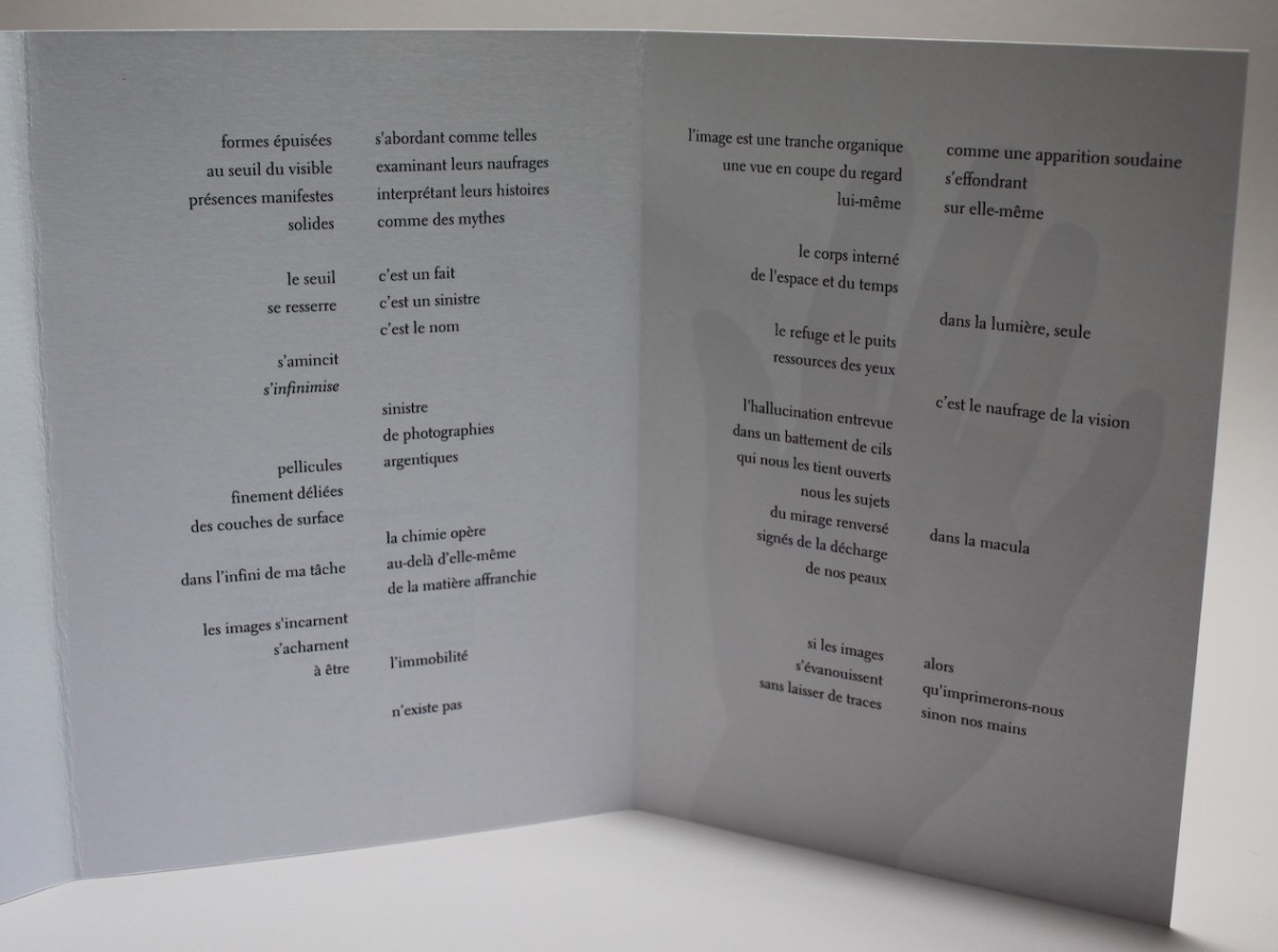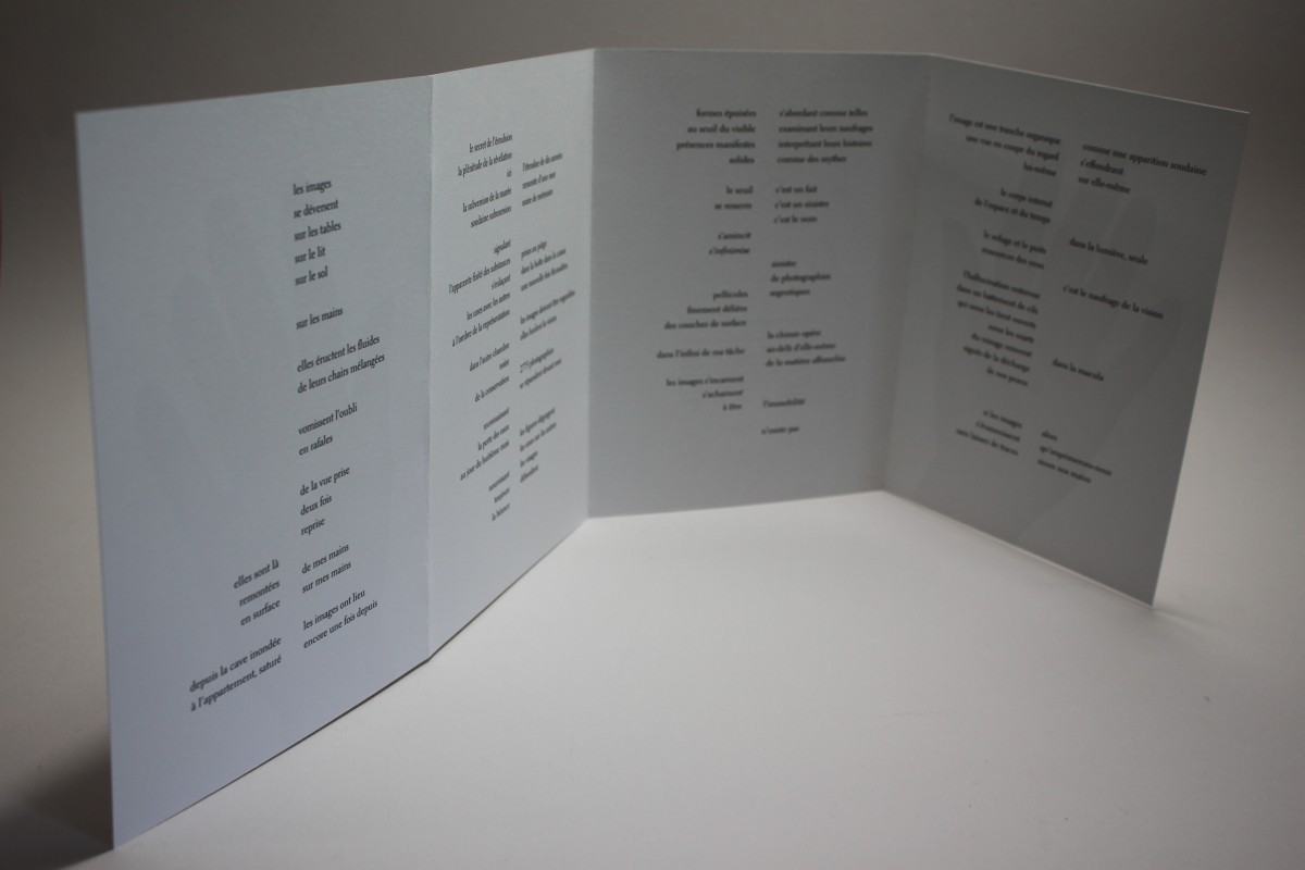 poème et photographie numérique imprimés à l’encre pigmentaire sur Munken Lynx blanc 240g., 6 pages, 3 plis 14x20cm