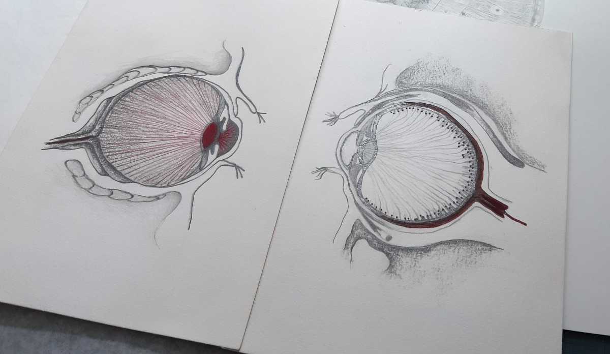 dessins à la graphite et stylo bille rouge sur canson 20x15cm