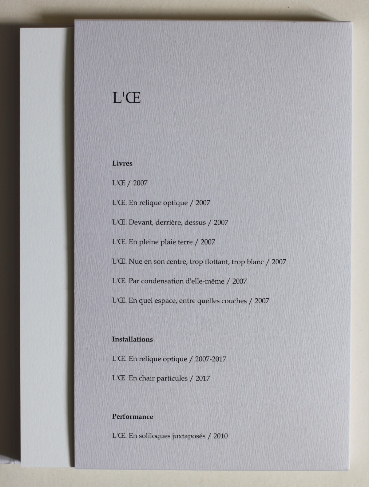 Depuis 2007, L'œ a donné forme à des éditions, objets, dispositifs, installations et performances.