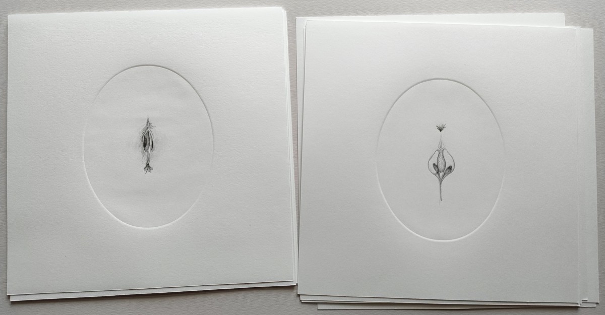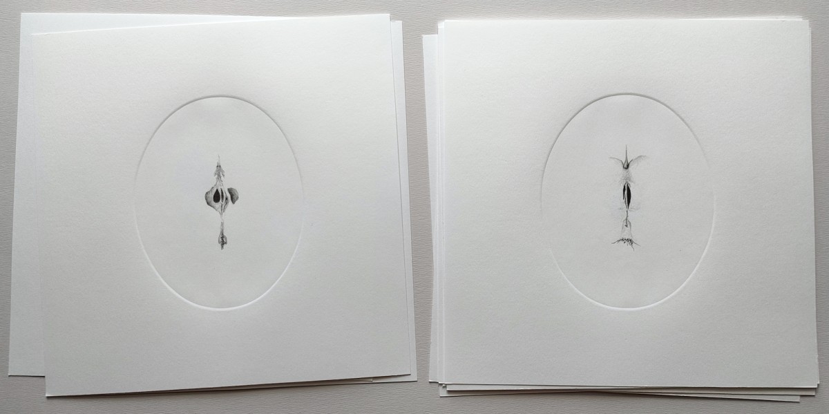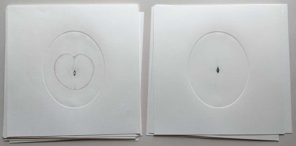 série de 12 dessins à la graphite et gaufrage sur BFK Rives 25x25cm