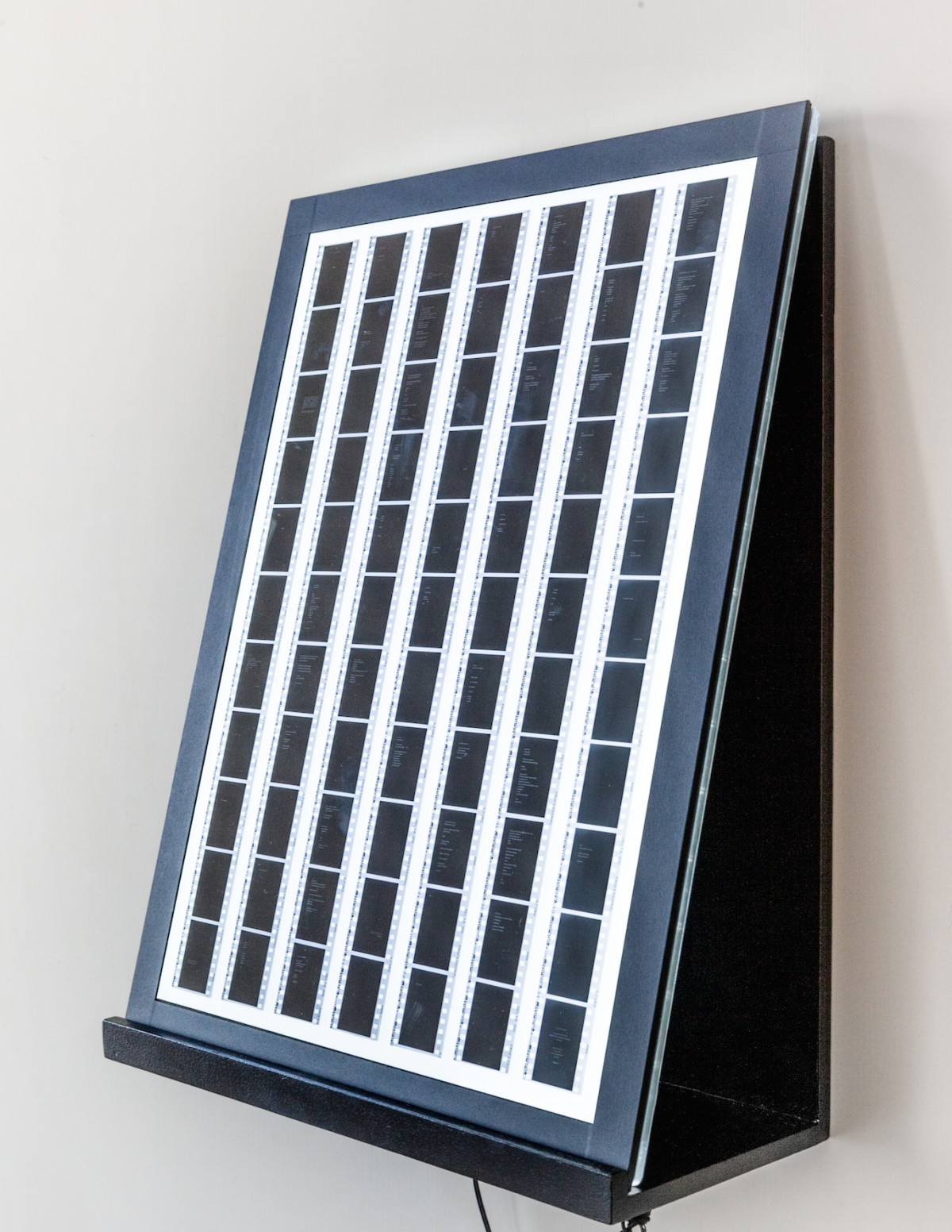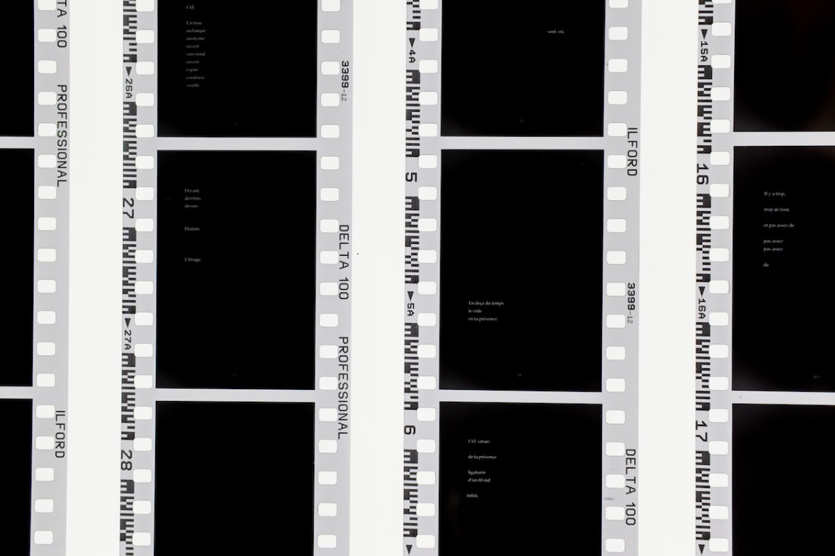 Ce dispositif est issu de la variation L’Œ en relique optique de L'Œ, dans laquelle le texte se rétracte et se déplace du papier au celluloïd photographique. Le texte est toujours lisible, à l'œil nu ou avec une loupe.