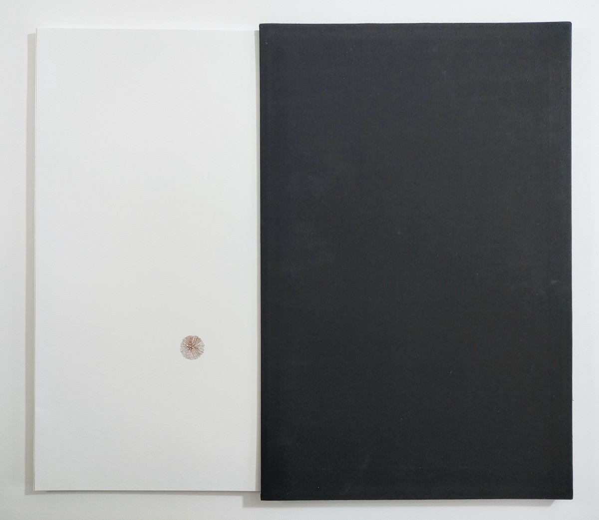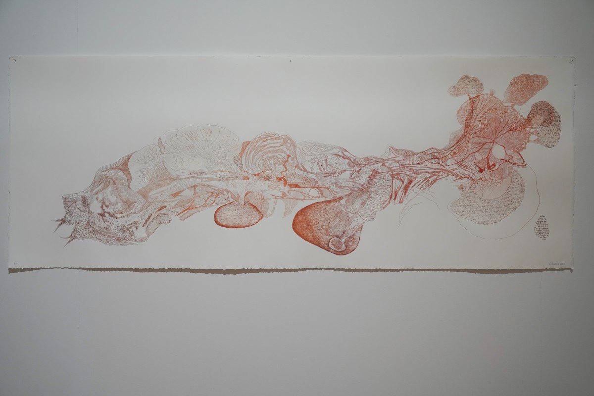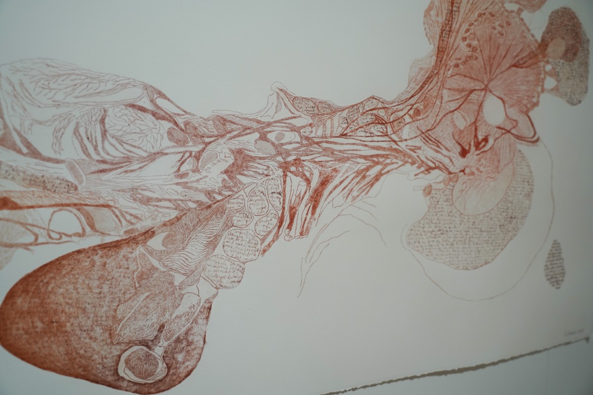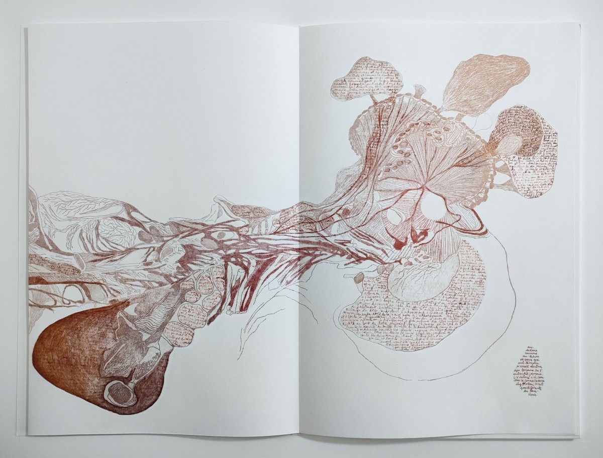 texte imprimé à l'encre pigmentaire sur papier Awagami Kozo blanc 42g. de 30x45cm accompagné d'une estampe de 120x45cm pliée en leporello, imprimée en taille douce sur papiers BFK Rives blanc 300g. et wenzhou blanc 30g., sous chemise avec dessins numériques imprimés à l’encre pigmentaire sur Rivoli Vélin blanc 240g,