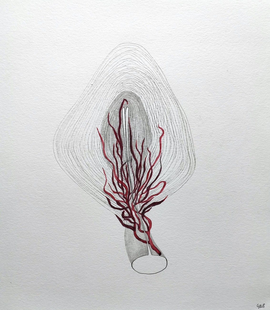 sept dessins à la graphite et à l’encre sur papier Rivoli vélin 28x32cm